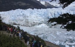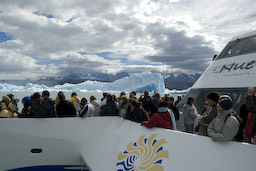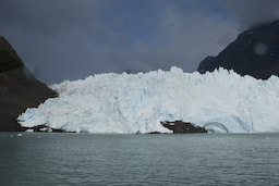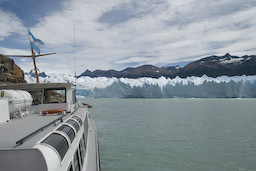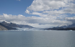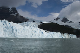 | Dieser Gletscher hat mit 130m die höchste Abbruchkante. Wir hatten Glück und es hörte auf zu regnen und die Sonne kam heraus. Es ging dann weiter zum Uppsala Gletscher. Hier gab es sehr viele Eisberge, die im See trieben. |