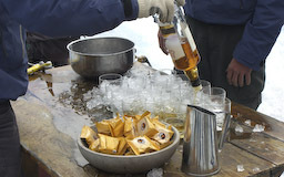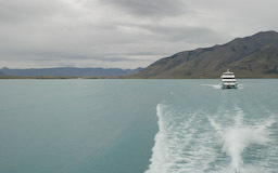 | Dann ging es mit dem Bus ein Stück zurück zur Bootsanlegestelle und mit dem Boot über den See zum Gletscher-Mini-Trekking. Mit Eisenkrallen an den Schuhen liefen wir mit zwei Bergführern knapp zwei Stunden über den Gletscher. Zum Abschluss gab es Whiskey mit Gletschereis. |