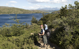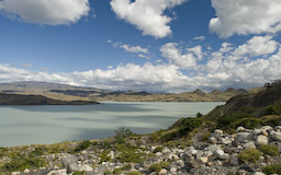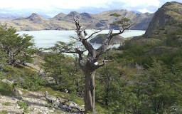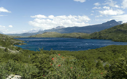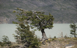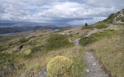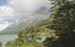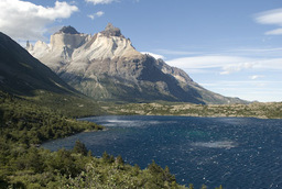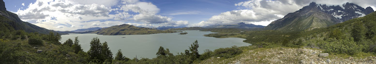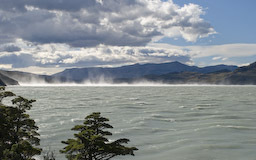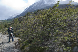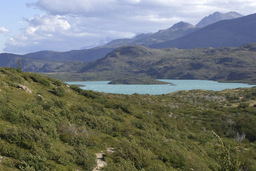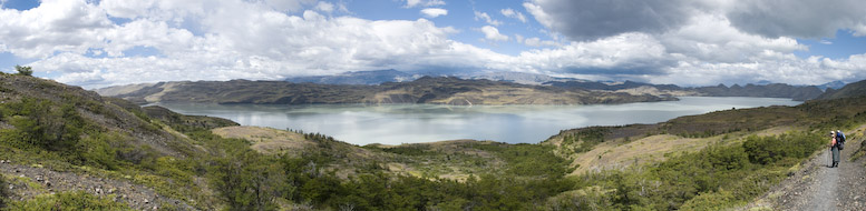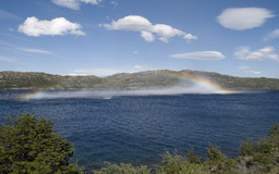 | Wir drehten wieder um und machten uns, wieder mit den Rucksäcken, auf den Weg zur Lodge Paine Grande. Anfangs war der Weg sehr einfach und bot in alle Richtungen sehr schöne Ausblicke. Auf dem Lago Skottsberg bildeten sich immer wieder Wasserhosen und schöne Regenbogen. |