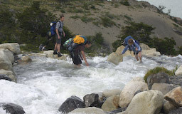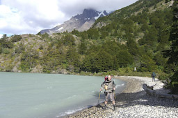 Mittwoch, 13.2.08Heute war das Wetter recht bewölkt und regnerisch. Dafür mussten wir kein Gepäck schleppen. Wir machten einen kurzen Abstecher zum Mirador und wanderten am Grey Gletscher entlang in Richtung John Gardner Pass. Wir erreichten 450 Höhenmeter, überquerten eine Schlucht auf dort angebrachten Leitern und drehten kurz vor dem Camparmiento Paso wieder um, da es hier wieder bergab ging und uns die letzten Tage in den Knochen steckten. |