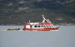 | Mittags kehrten wir zum Refugio zurück und aßen unser Lunchpaket. Um 13 Uhr wurden wir vom Boot abgeholt. Die Fahrt ging zuerst an der Gletscherabbruchkante vorbei. Wir hatten Glück und es herrschte strahlender Sonnenschein. Das Eis leuchtete tiefblau. Bevor es über den See ging gab es Pisco Sour mit Gletschereis. |