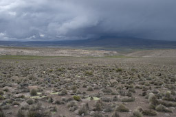| Am Lago Chungara, dem auf 4570m höchstgelegenen See der Erde, wurde das Wetter schlechter. Von Bolivien drückte Regen herein und es donnerte auch. Wir fuhren zurück und besichtigten den Ort Parincota. In einer kleinen Bude aßen wir etwas zu Mittag und tranken Koka-Tee. Mittlerweile regnete es hier auch. |